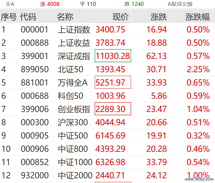 11月7日上午,A股市场震荡上行。截至发稿,主要指数全线飘红,创业板指涨超1%。