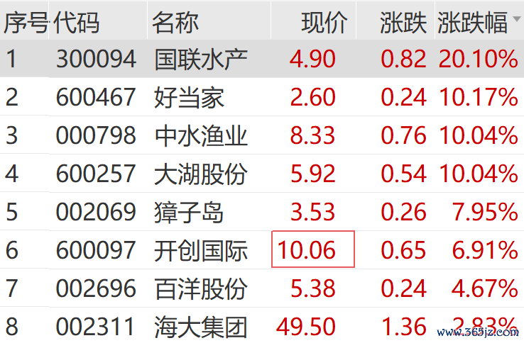 水产板块亦有较好表现。国联水产20CM涨停,大湖股份、好当家等涨停,獐子岛、开创国际等跟涨。