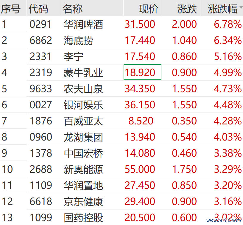 港股早间开盘飘绿,之后直线拉升,截至发稿三大指数均涨超1%。港股消费同样发力,华润啤酒、海底捞、李宁等领涨恒指。